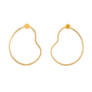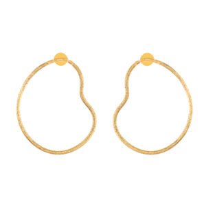 - Silhouette: Slim oval drops suspended from curved gold hooks