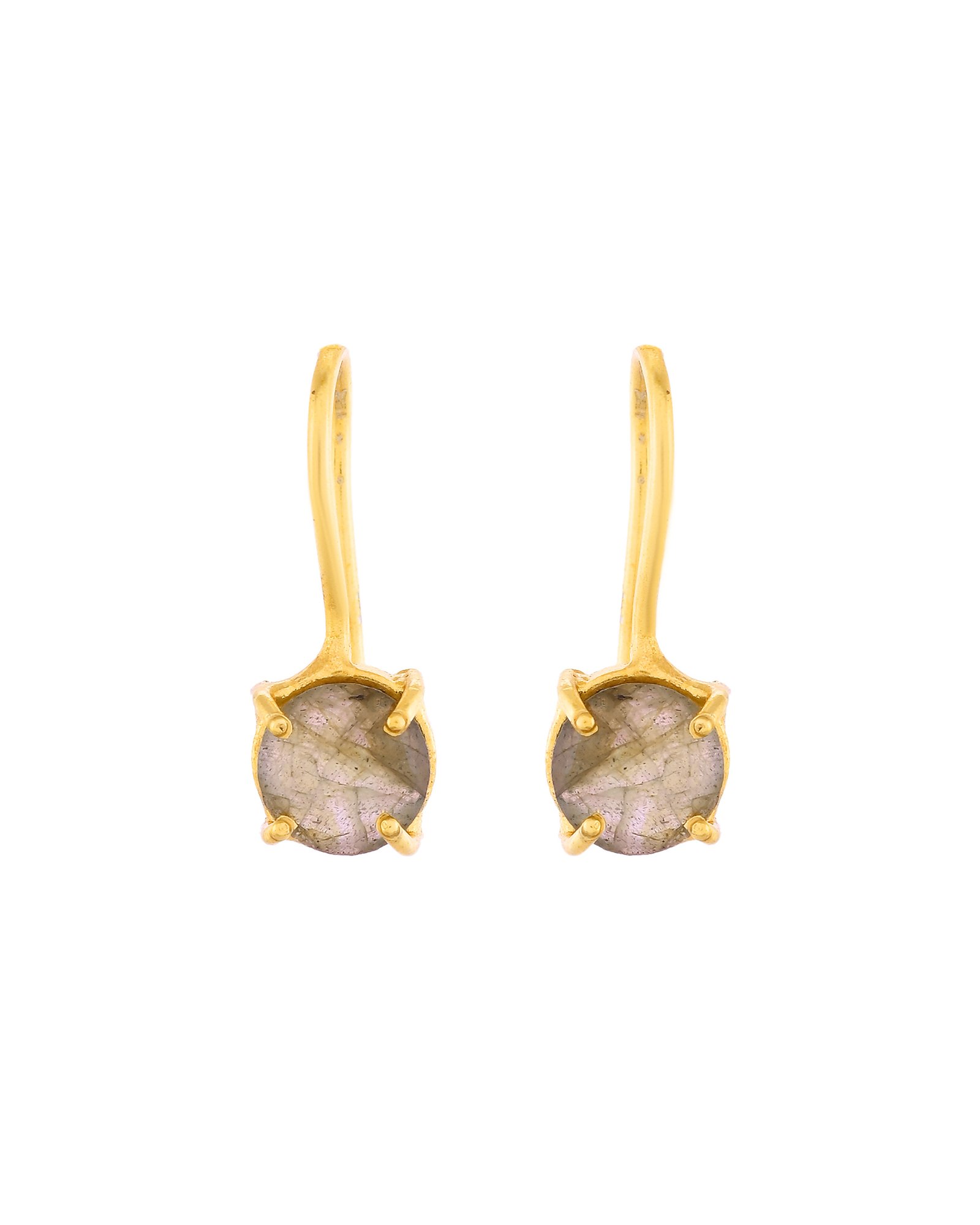 - Material & colour: Gold-toned hooks with oval-cut labradorite stones displaying subtle iridescence