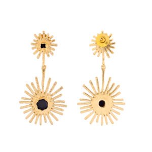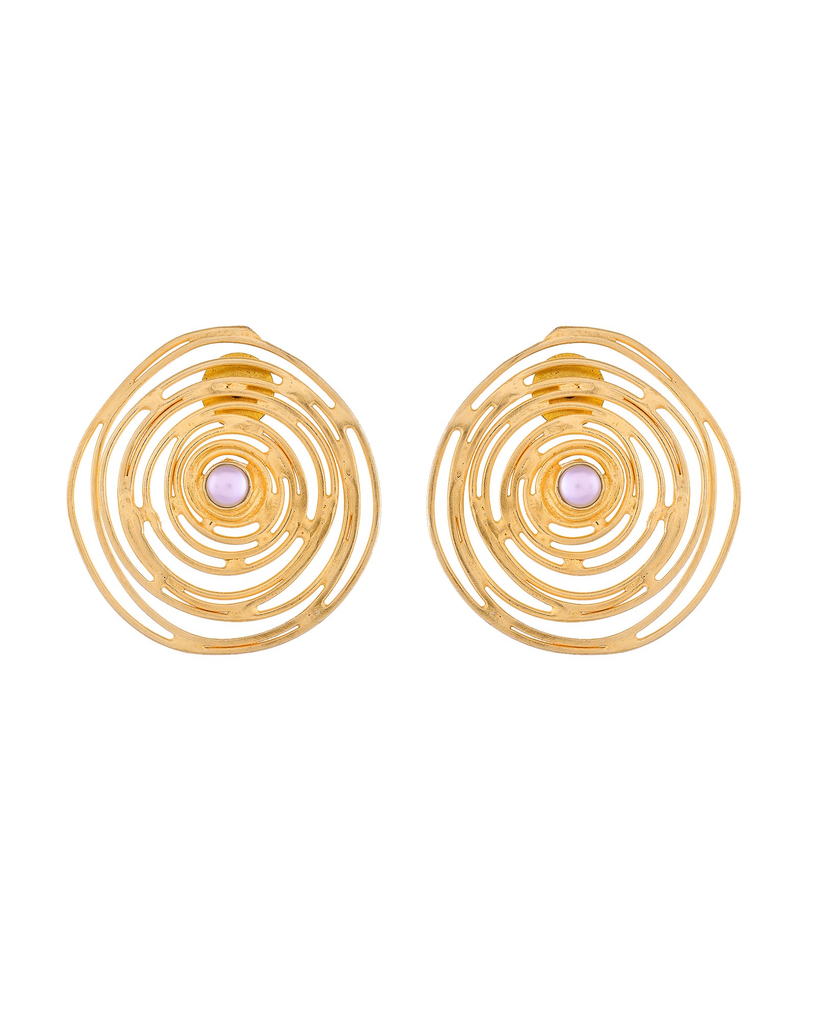 • Layered concentric textures in circular gold-toned design evoke a sense of rhythm and balance