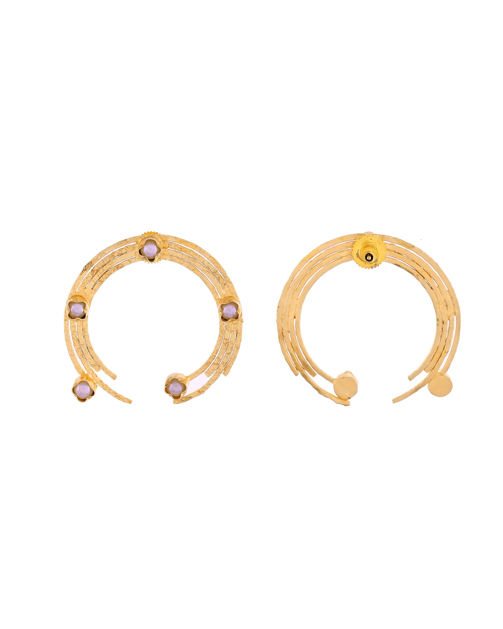- Gold-tone floral studs with a circular silhouette and petal-like detailing evoke soft elegance